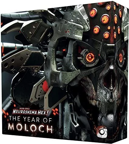 A special edition of best selling Portal Games title: Neuroshima Hex! released as a special for The Year of Moloch. It contains a large box with a new cover, a two-layer board with new graphics, HQ markers for all armies, boards for all armies, a plastic molder, Moloch’s origins campaign, new illustrations of an army units, and FAQ in brochure. Neu-roshima Hex! The Year of Moloch edition is a strategy game set in the post-apocalyptic world of Neuroshima in which each player leads one of four armies: Borgo, Hegemony, Moloch, and Outpost. Each army deck consists soldiers tiles, support tiles, and special actions. You win when all enemy headquarters are destroyed or if your HQ has the least damaged at the end of the game.